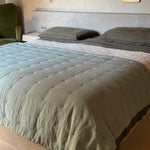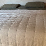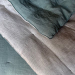 The features of our classic quilt with natural linen on one side and a sage linen on the other, filled with a comforting poly-filling. Bar stitching through both sides gives subtle detailing for visual interest.