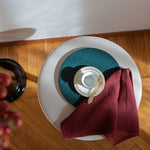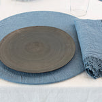Our round placemat with removable covers is a beautiful new way to play with the colour and texture of our linen on your table.