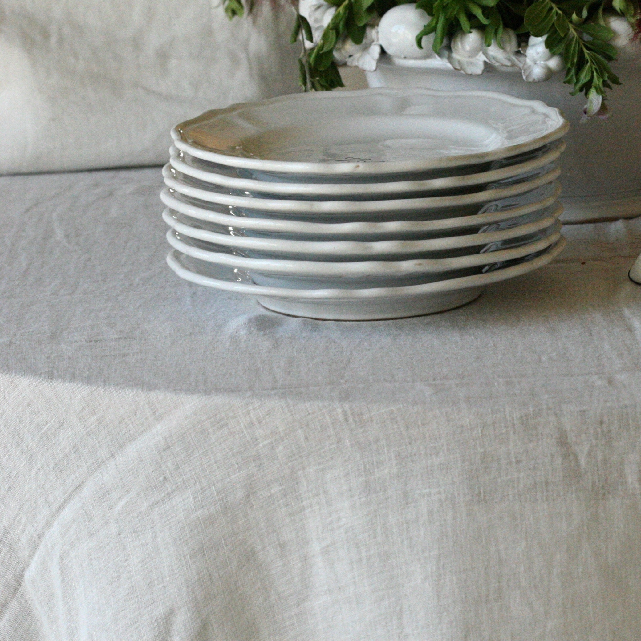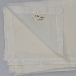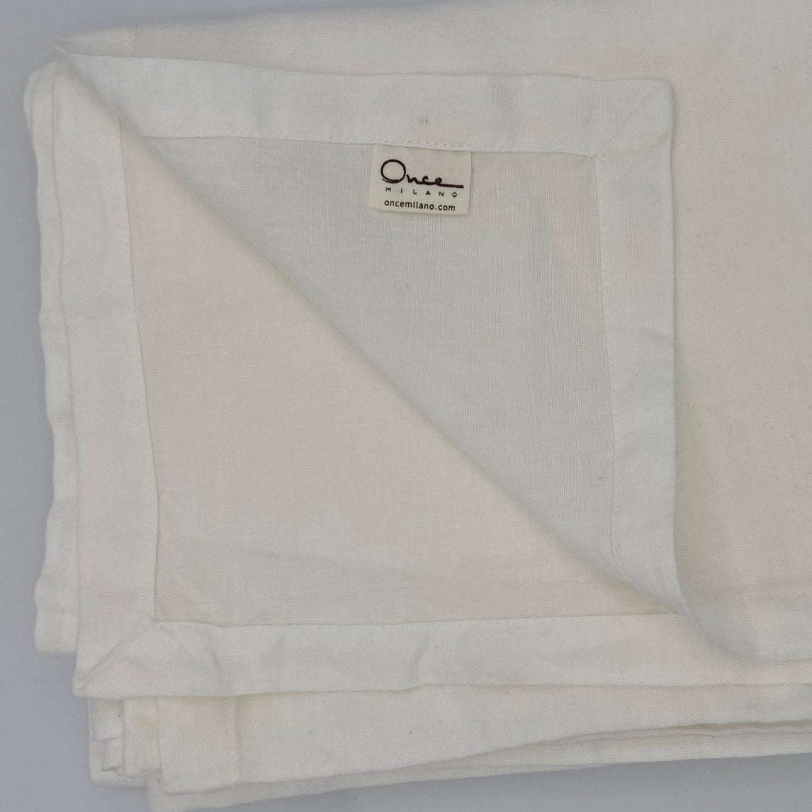 Once Milano white linen finished with a simple 2cm hem for a classic white linen tablecloth.