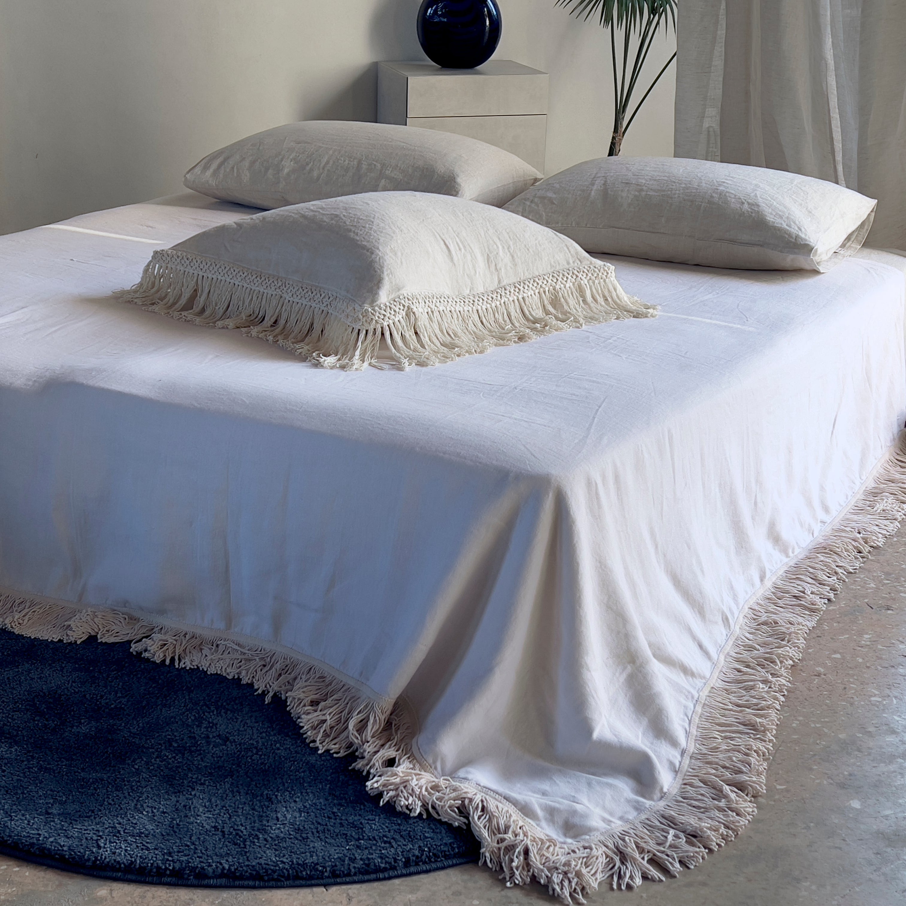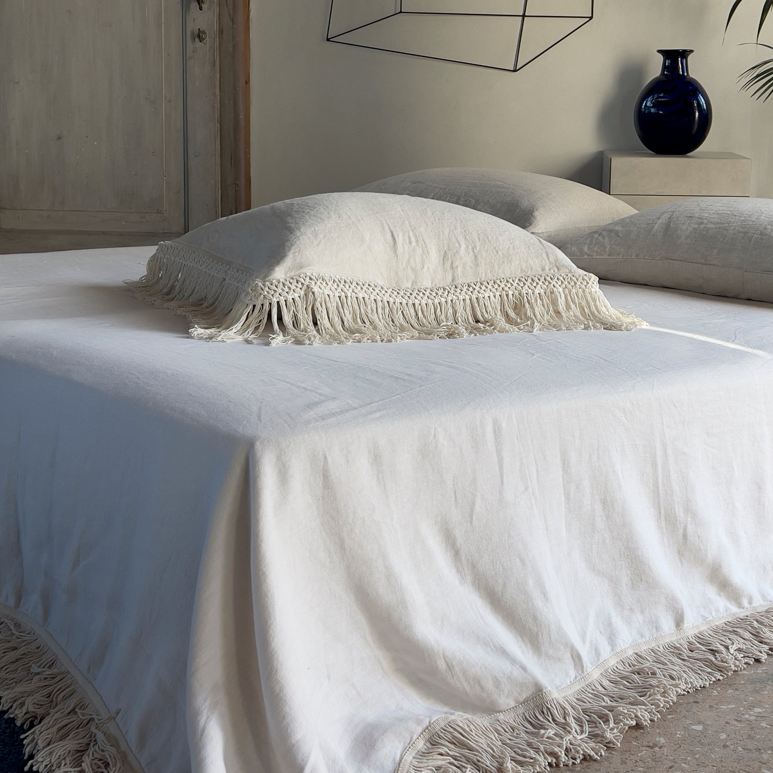 Our cushion case with extra long fringe will add a glamorous flourish to any bed.