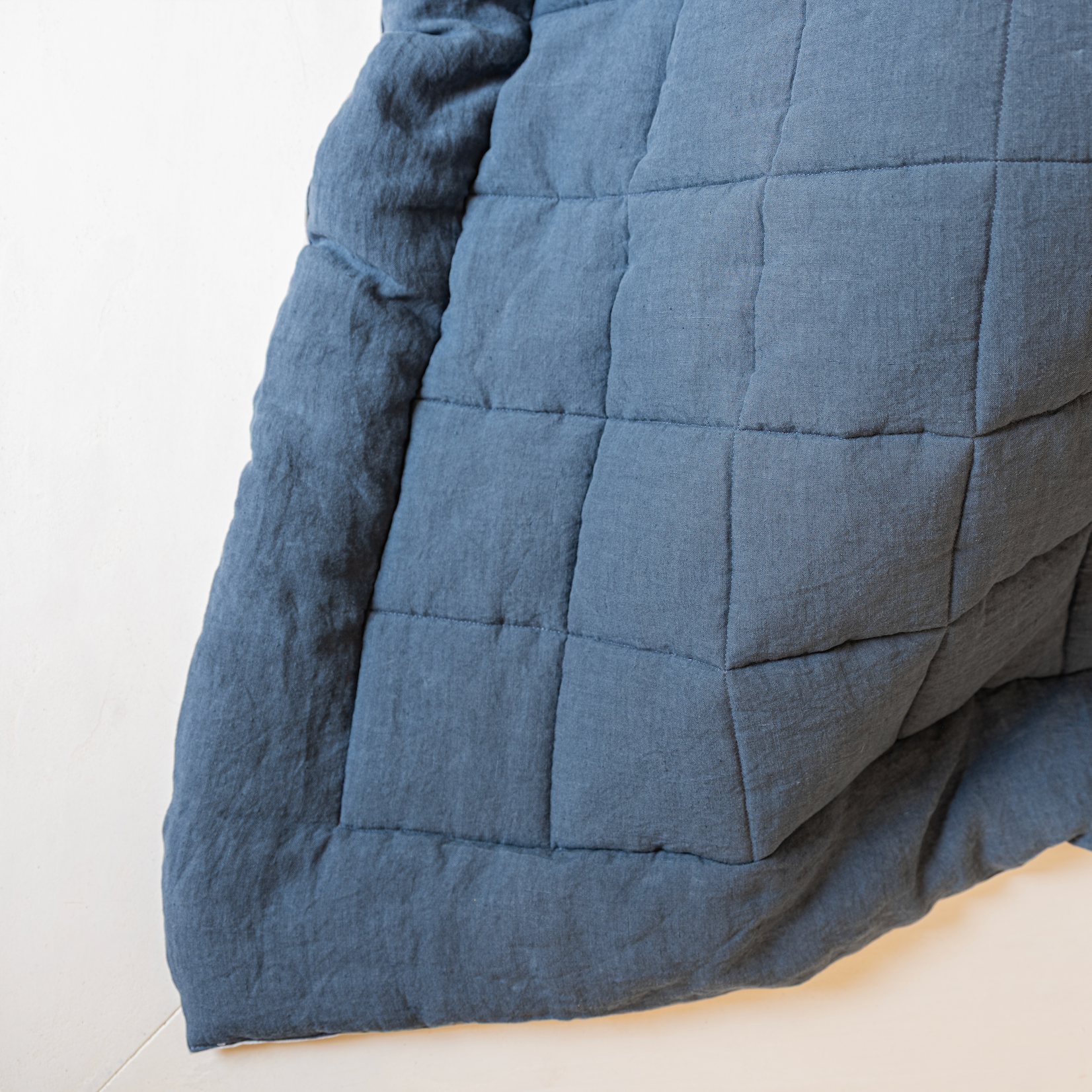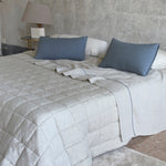 The quilt with box stitch is a new design for our classic quilt. The box stitch sewing detail enhances the beautiful appearance of variations in the shade of the colour of the linen. This elegantly simple pattern is incredibly versatile and can be combined with other patterns and styles. All our quilts are made from linen paired with a polyfilling to ensure they are as cosy as they are beautiful.