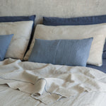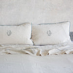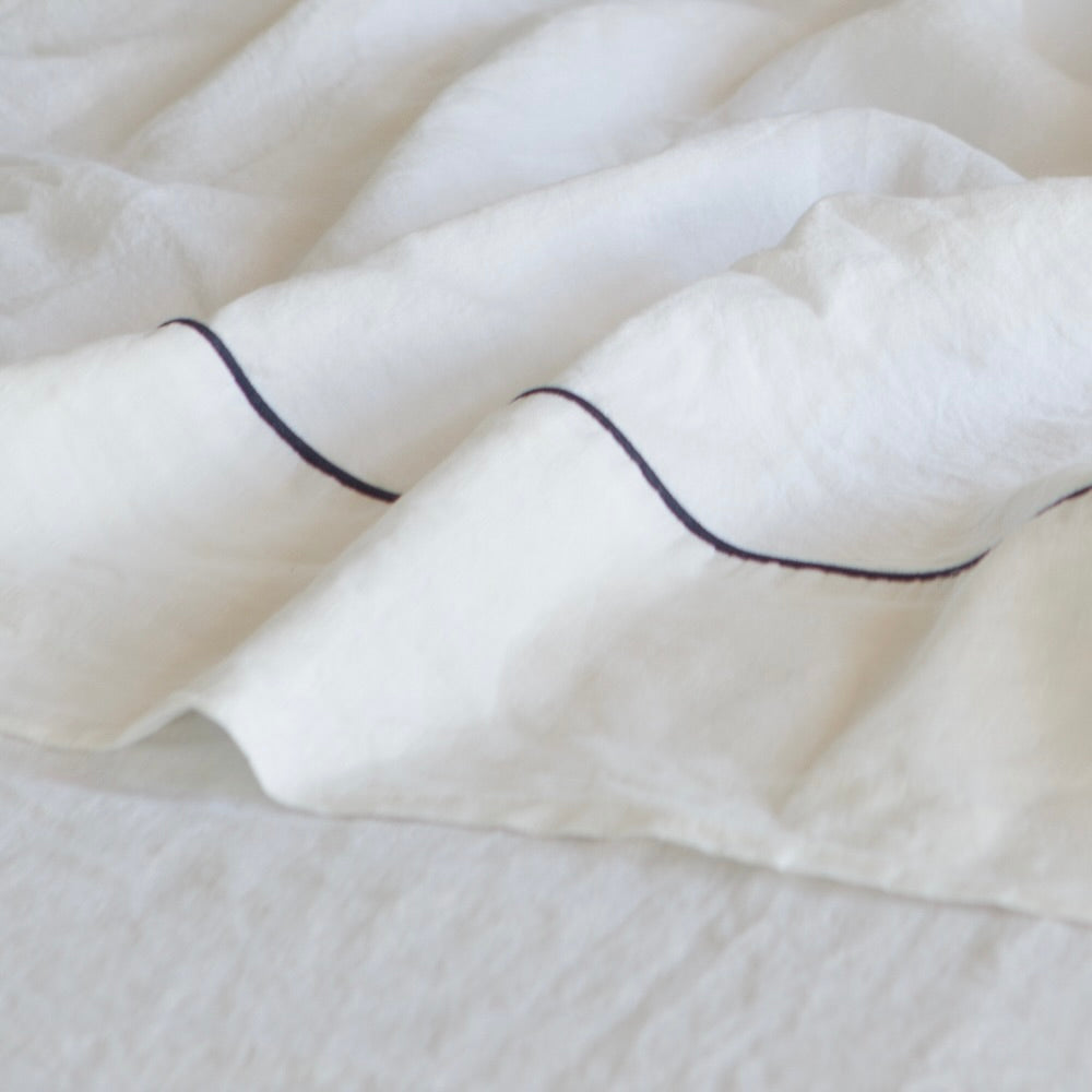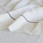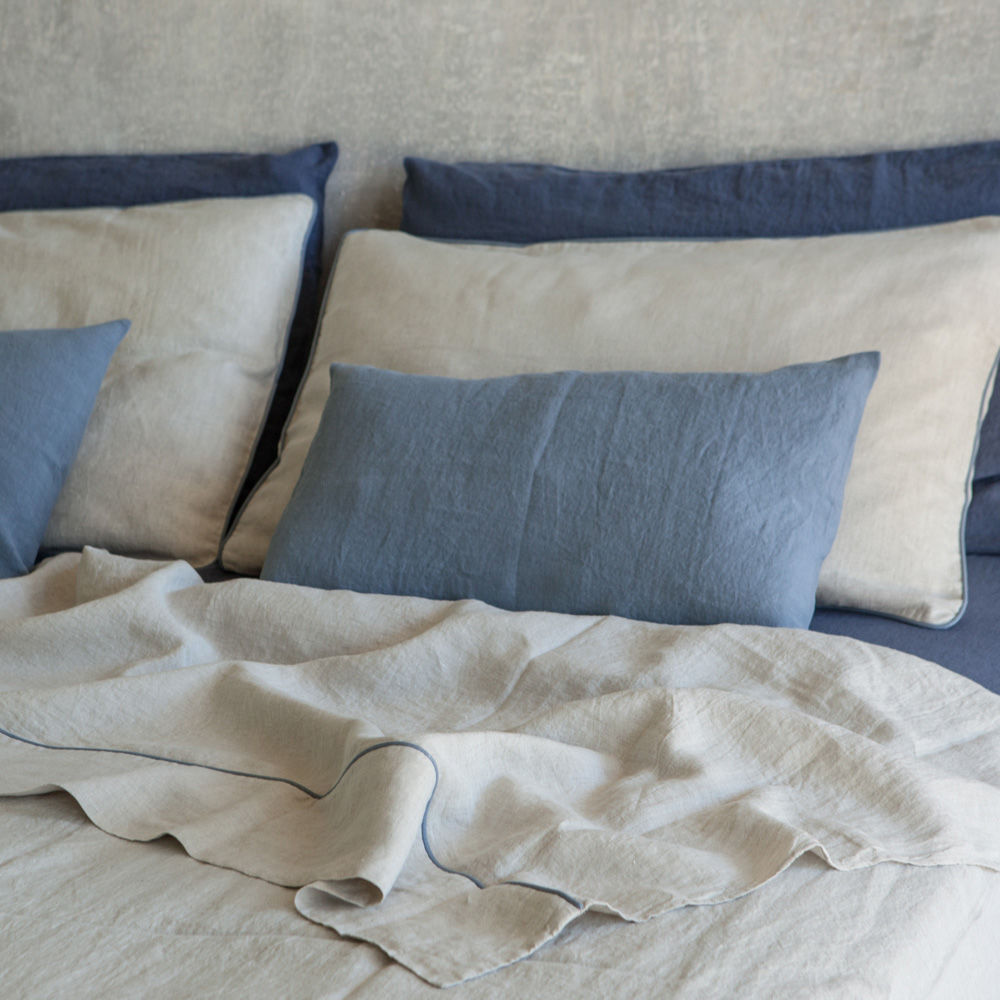 Slide under crushed linen top sheets enhanced with piping trims in colour combinations of your choice. Little else compares to linen bed linen which is warm and luxuriously cocooning during the cold winter months and yet is cool and light when the weather turns warmer. Contrasting colours in piping is a subtle way to add a mix of colours to your bedscape. Team with pillowcases with signature piping trims and fitted sheets in an extensive palette of tonal neutrals or punchy bolder shades.