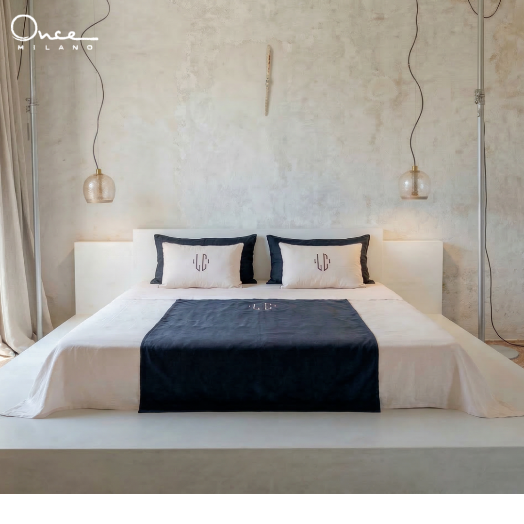 bed cover with contrasting piping in heavy canvas linen, ARCHIVE