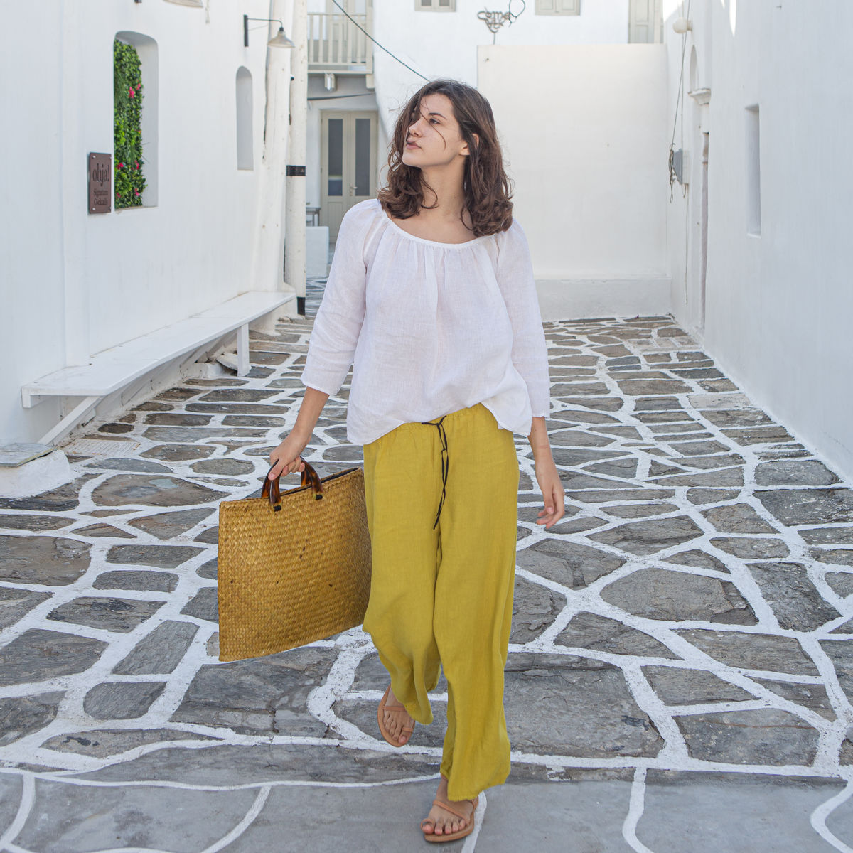The white sandy beaches of Sicily have inspired the curving lines of our Linosa Top. Its soft and easy-fitting round neck makes a piece that can be worn time and again.