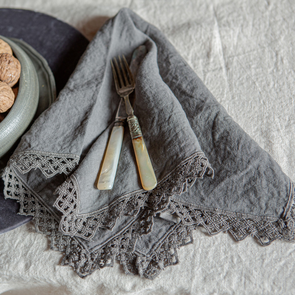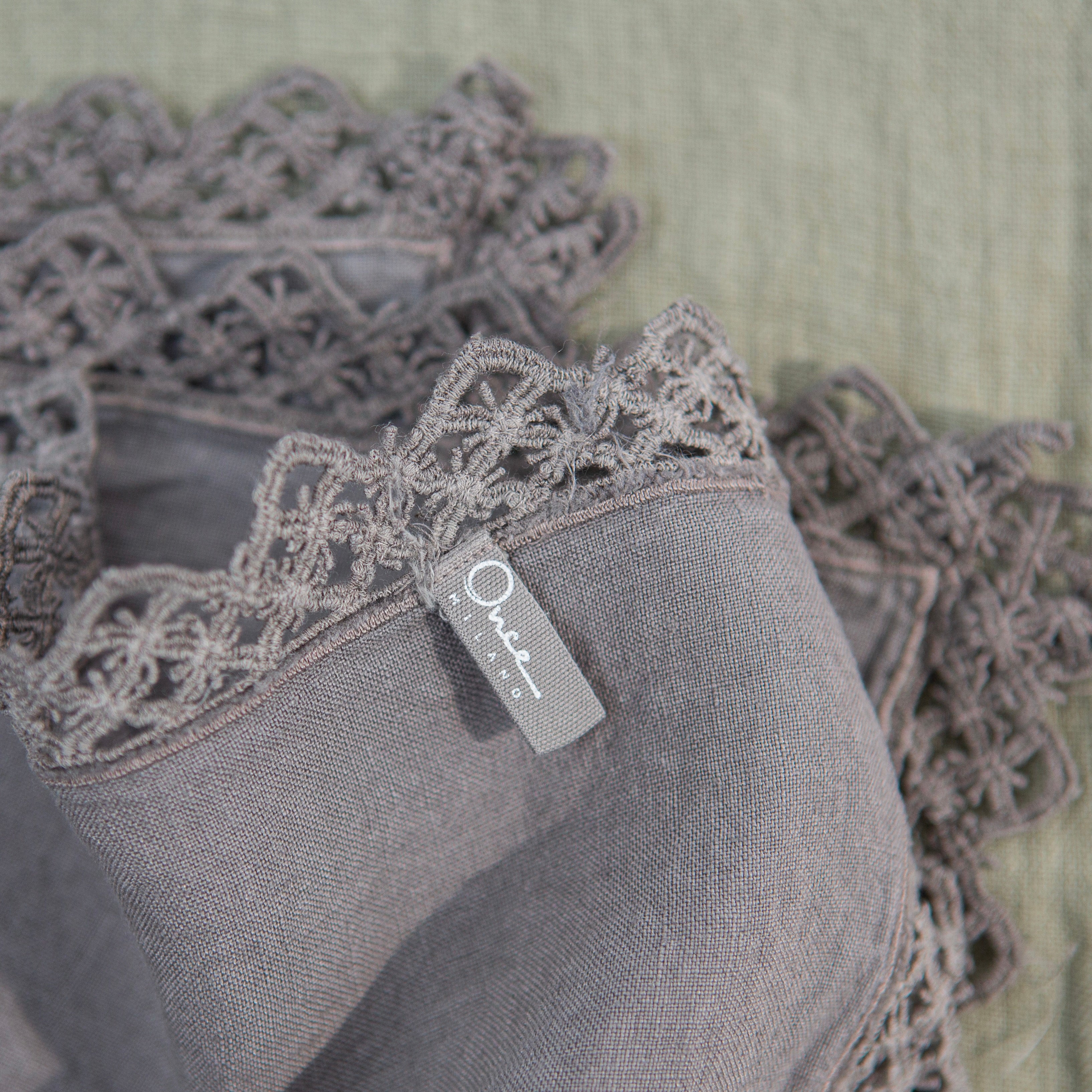 This beautiful crushed linen napkin with macramé detailing is a modern take on an exquisite traditional craft. Available in all the colours of the Once Milano range, it adds the most effortless touch of luxury to any table.