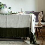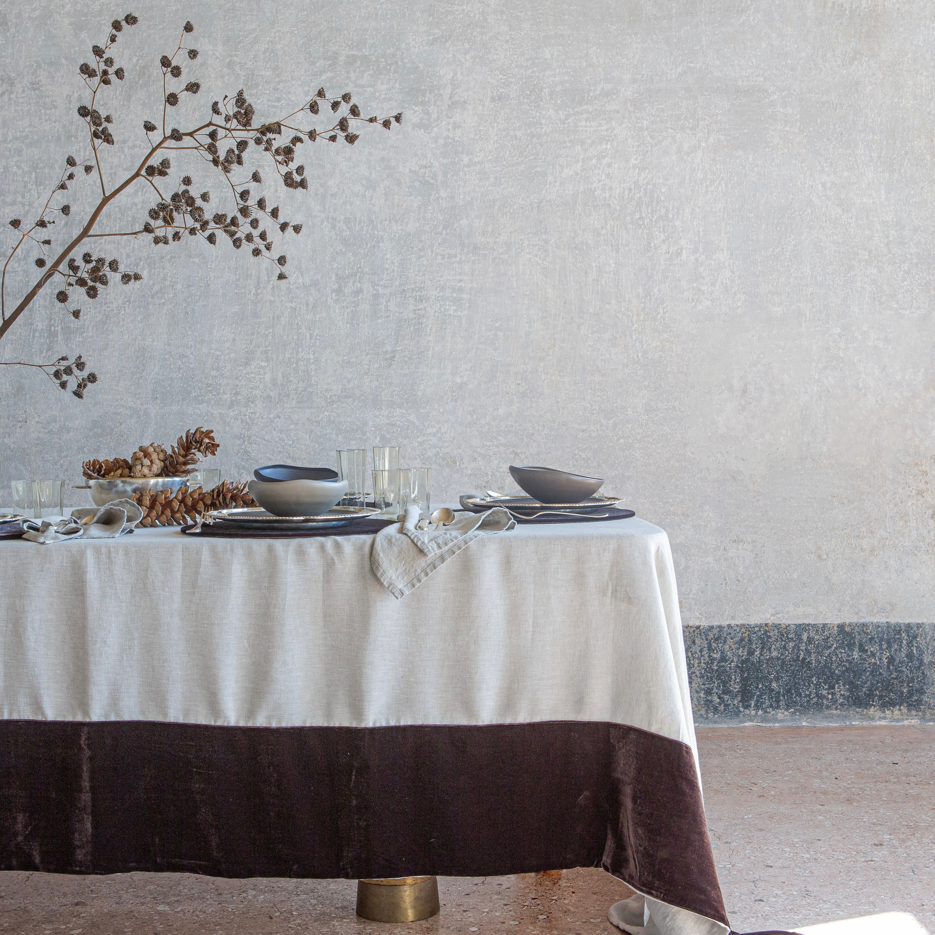 This sumptuous tablecloth is available in natural linen with a velvet border chosen from a beautiful range of hues in velvet.