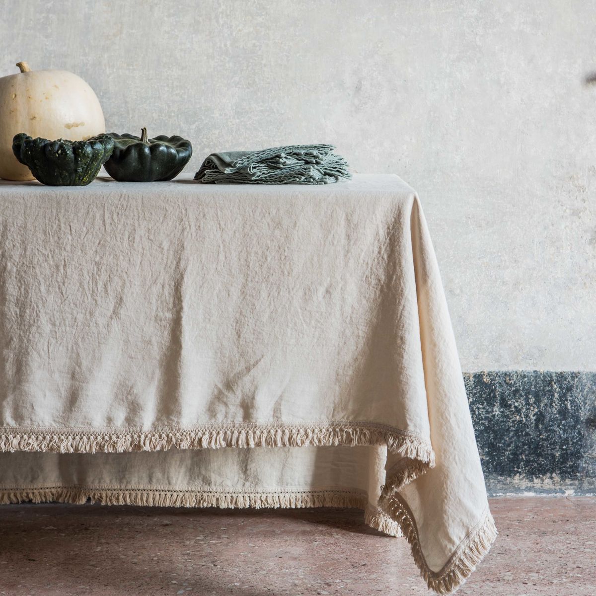 Our linen tablecloth with fringe is a hero of the Once Milano collection and adds a dollop of style to any table setting. This versatile item also doubles up as a bed throw or looks casually elegant draped over a sofa or chair. Made from 100% handmade Italian linen, the fringe trim adds interesting textured detail and a vintage finish. It is one of our most popular choices for a host gift when staying with friends for the weekend.