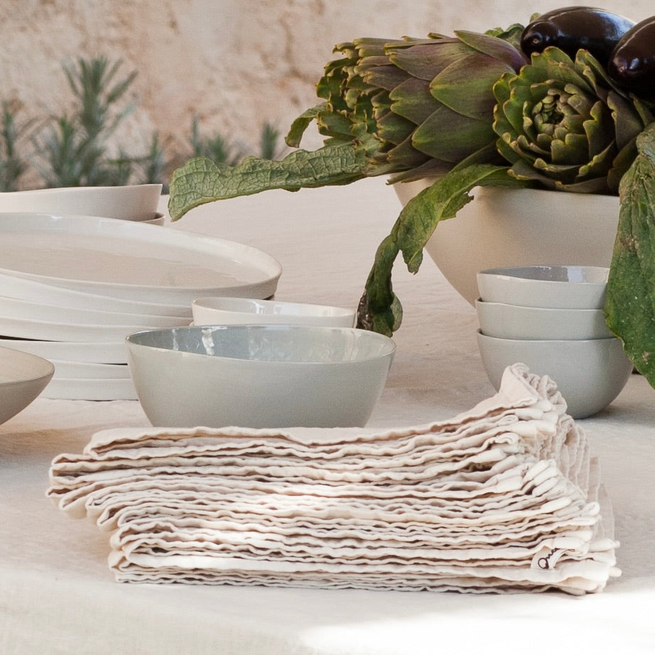 Celebrate everyday with Once Milano’s light weight linen napkins in a variety of solid colours and with the addition of the black and white gingham checks which denote a timeless luxury. Available in a set of four they are made from 100% handmade Italian linen and are available in any shade from Once Milano’s extensive colour chart of bolds and neutrals. Have fun teaming with different coloured runners, placemats or tablecloths for tablescaping at its most stylish.