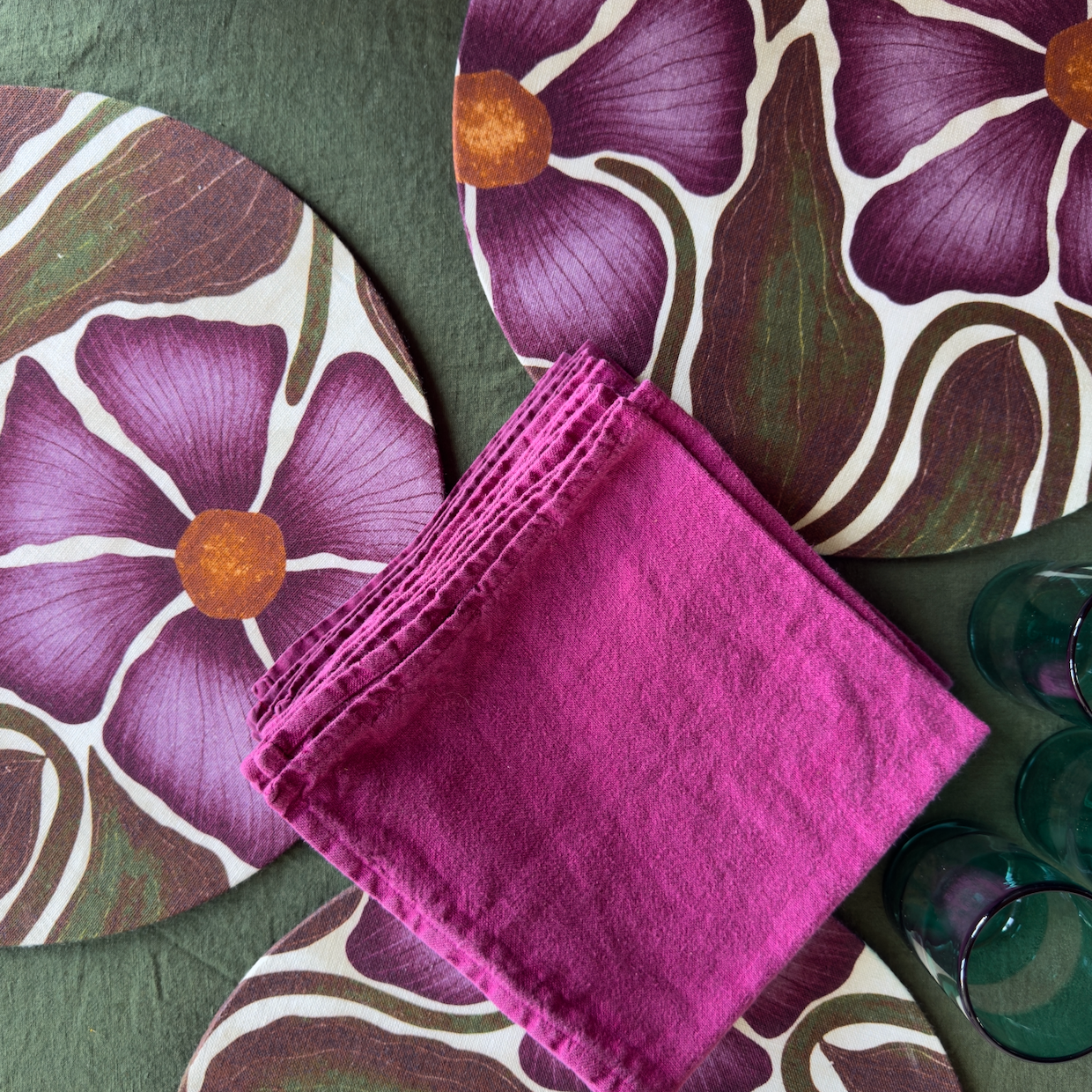 The vibrant colour options of the floral print give a bold punch of colour to your table. The removable placemat covers are crafted from linen and pulled tightly over an inner support (sold separately). This creates a clean circular form to create a wonderfully graphic table with bold design and elegant shapes.