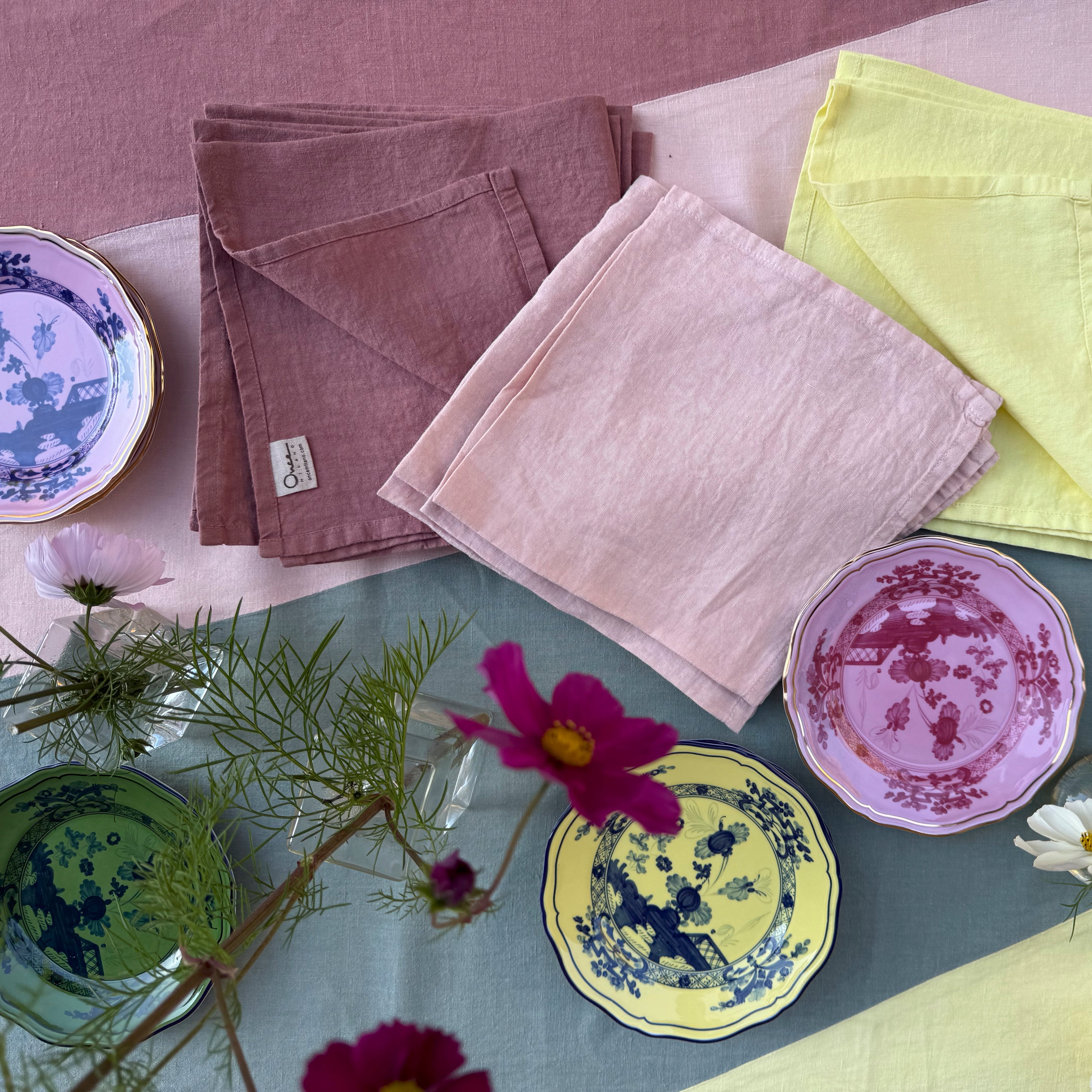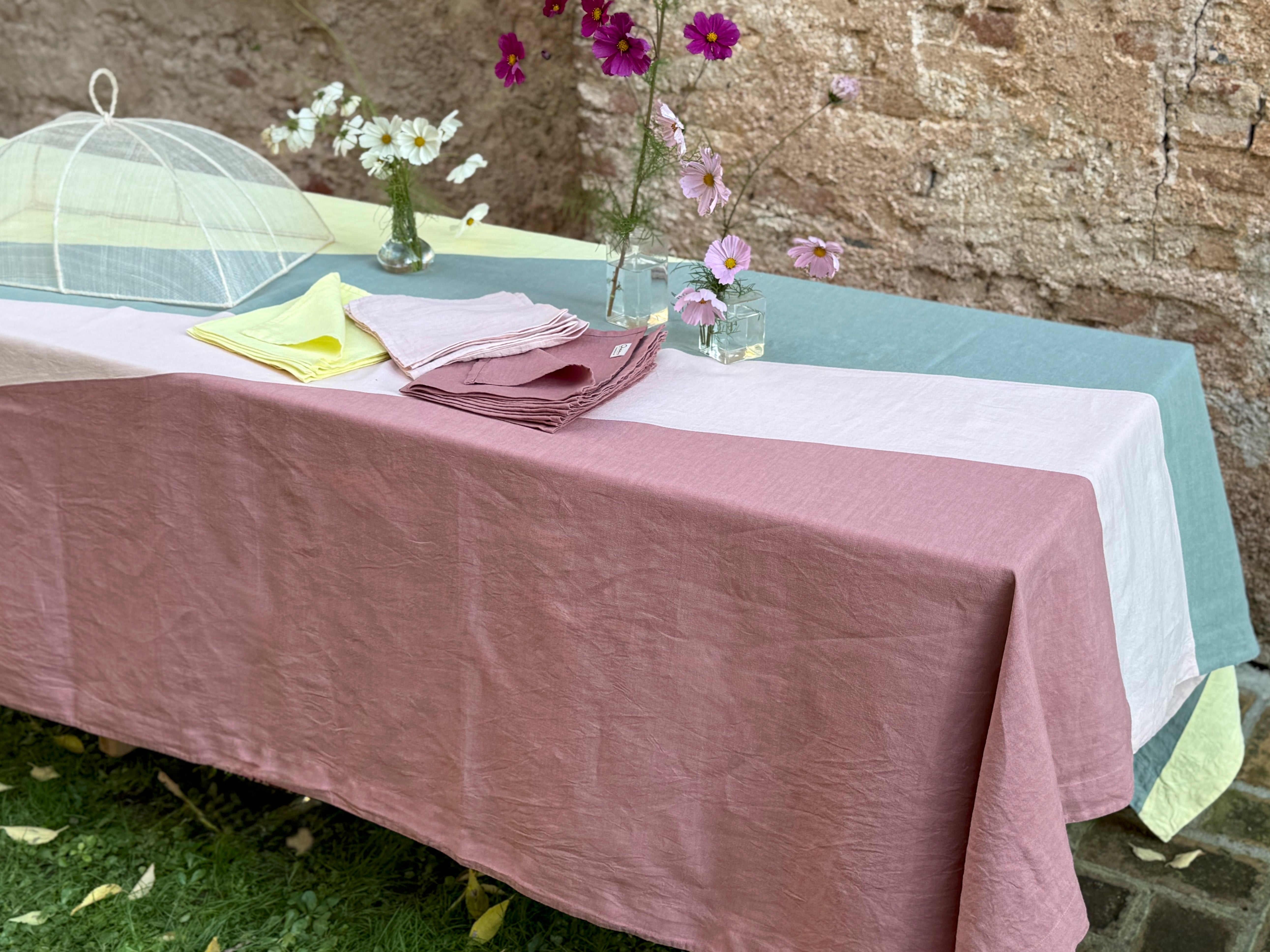 Once Milano’s tablecloth in a bold patchwork, graphic pattern adds an upbeat modernist touch to any dining table. Made from 100% handmade Italian linen by craftsmen in the Veneto region, the tablecloth can be teamed with contrasting coloured crockery and placemats to create a bespoke joyful tablescape.